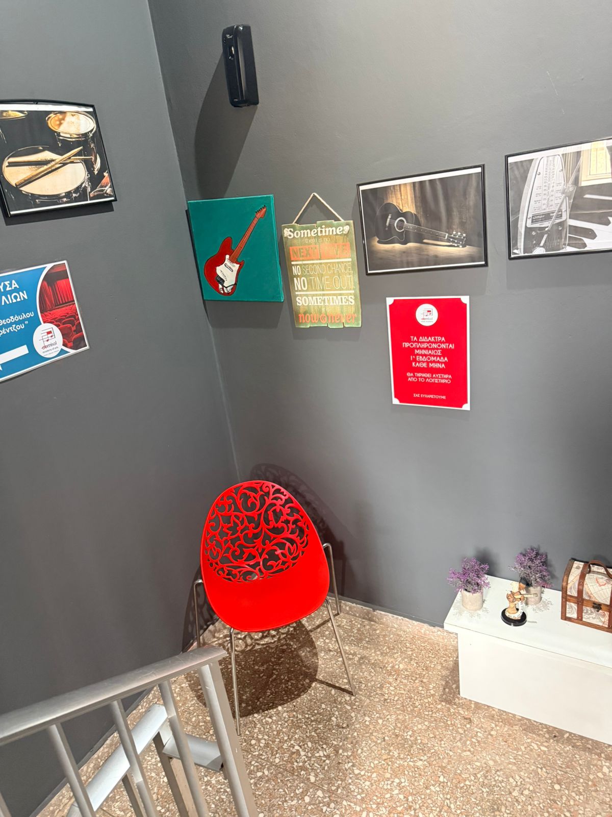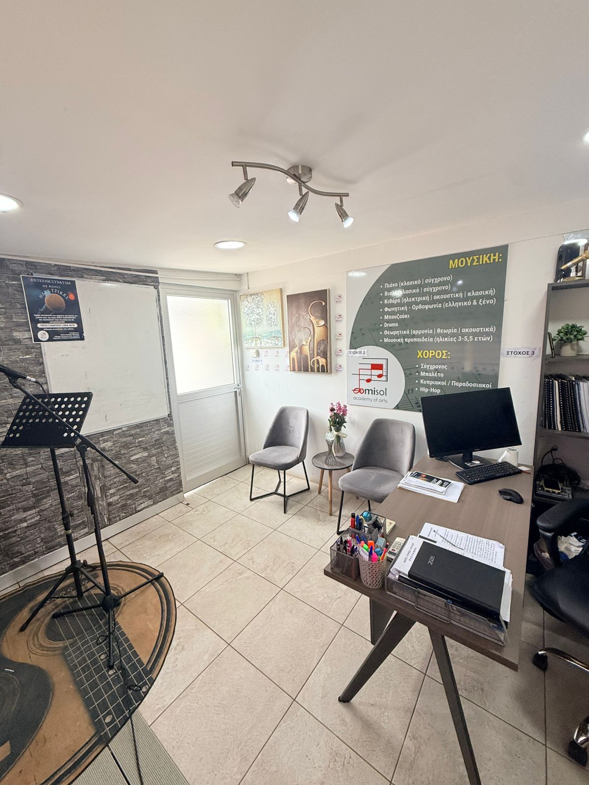Σε έναν σύγχρονο και πλήρως εξοπλισμένο χώρο, οι μαθητές μας μελετούν, κάνουν πρόβες και δημιουργούν με άνεση και ασφάλεια από αίθουσες διδασκαλίας και μελετητήρια μέχρι studio και χώρους συναυλιών.